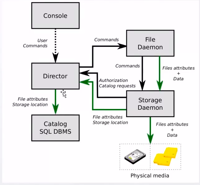 - Storage Daemon:读写备份存储介质,执行数据存储和恢复
