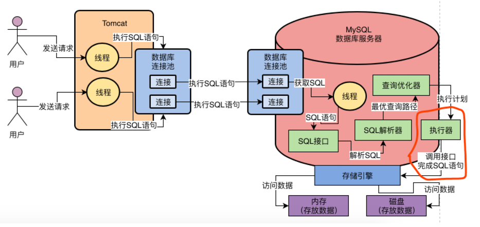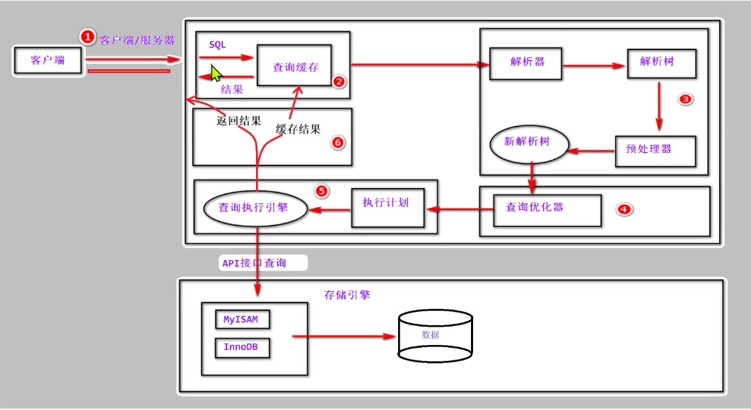 - 存储引擎按照一定的步骤查询内存缓存数据,更新磁盘数据,查询磁盘数据等等。