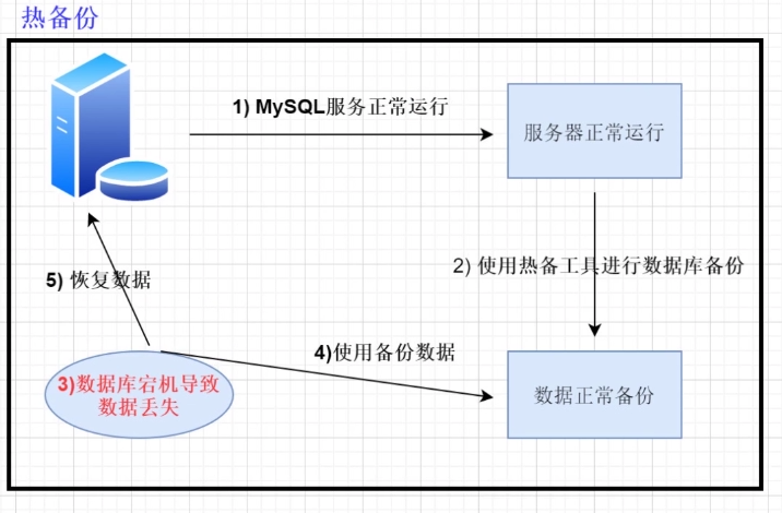 热备份是在数据库运行的情况下,备份数据库操作的sql语句,当数据库发生问题时,可以重新执行一遍备份的sql语句