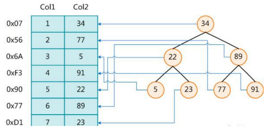 - .MYI文件 也是myisam存储引擎专用,存放myisam表的索引相关信息。每一个myisam表对应一个.MYI文件,其存放的 位置和.frm及.MYD一样