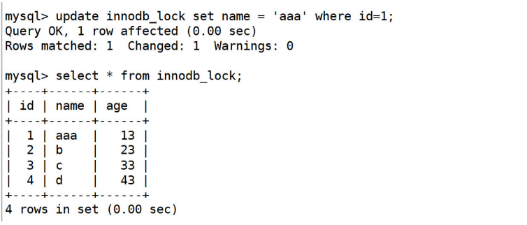 - 添加共享锁: select from table_name where … *lock in share mode;