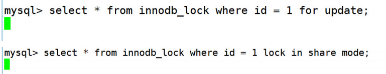 1 | select * from innodb_lock where id = 2 lock in share mode; |