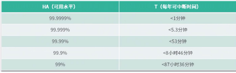 高可用有一个标准,9越多代表越容错, 可用性越高.