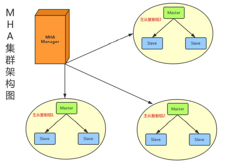 目前MHA主要支持一主多从的架构,要搭建MHA,要求一个复制集群中必须最少有三台数据库服务器, 一主二从,即一台充当master,一台充当备用master,另外一台充当从库。
