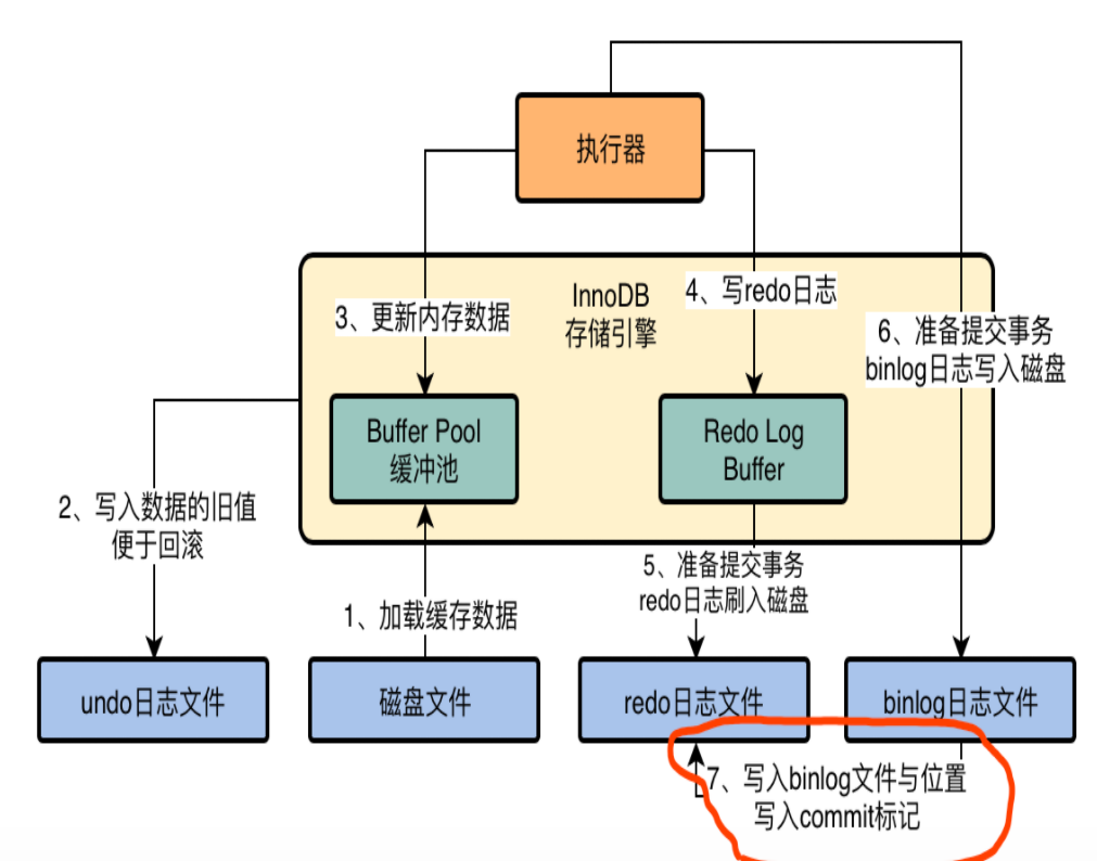 sync_binlog参数控制binlog的刷盘策略,默认值为0。此时binlog先进入os cache,再刷入磁盘。此时宕机,os cache里的binlog会丢失。 sync_binlog设置为1,在提交事务时,binlog直接写入磁盘。- 将binlog写入磁盘后,接着完成最终的事务提交,把本次更新对应的binlog文件名称和这次更新的binglog日志在文件的位置,都写入redo log文件中,同时写入一个commit标志