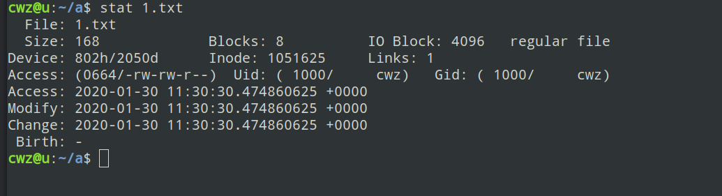 - Access Time:简写为atime,表示文件的访问时间。当文件内容被访问时,更新这个时间