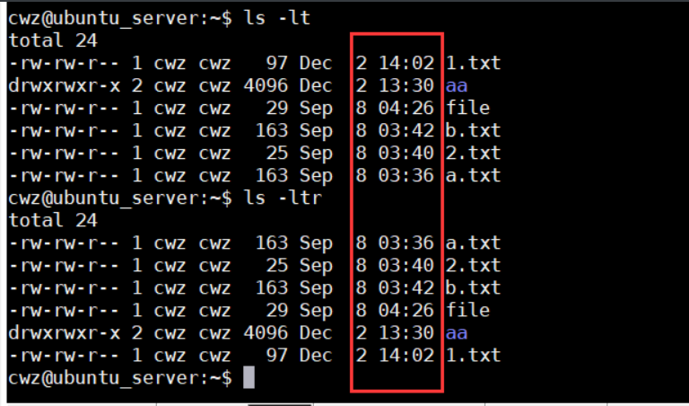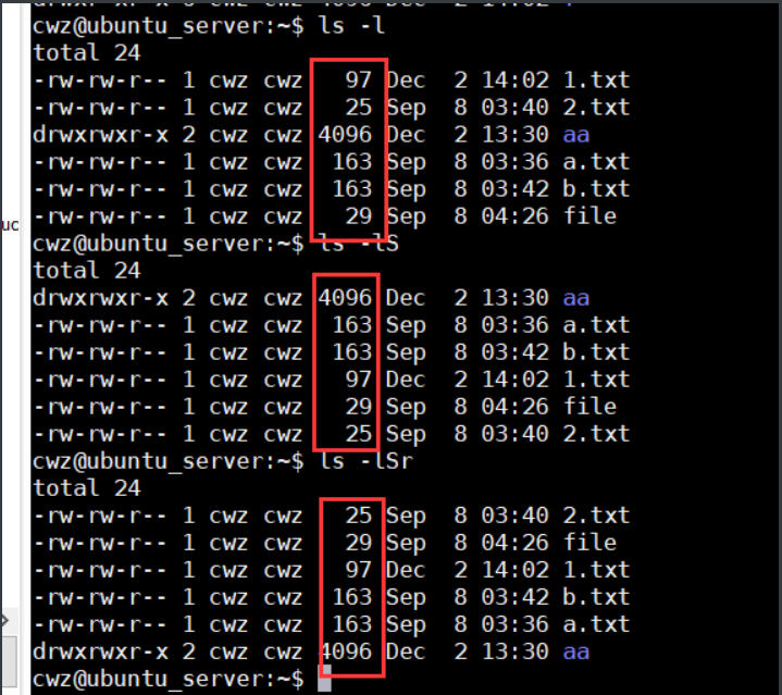 ls -S 按文件从大到小排序, ls -Sr按文件从小到大排序