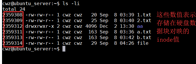 - inode表现形式为一串数字,不同文件对应的inode在OS中是唯一的