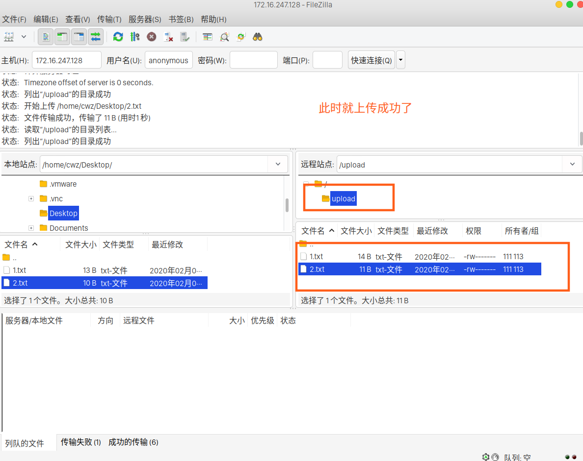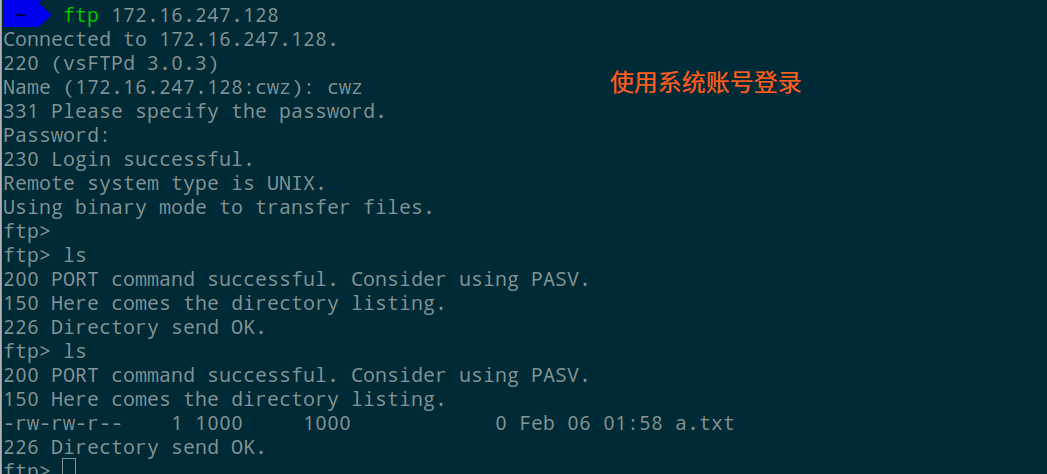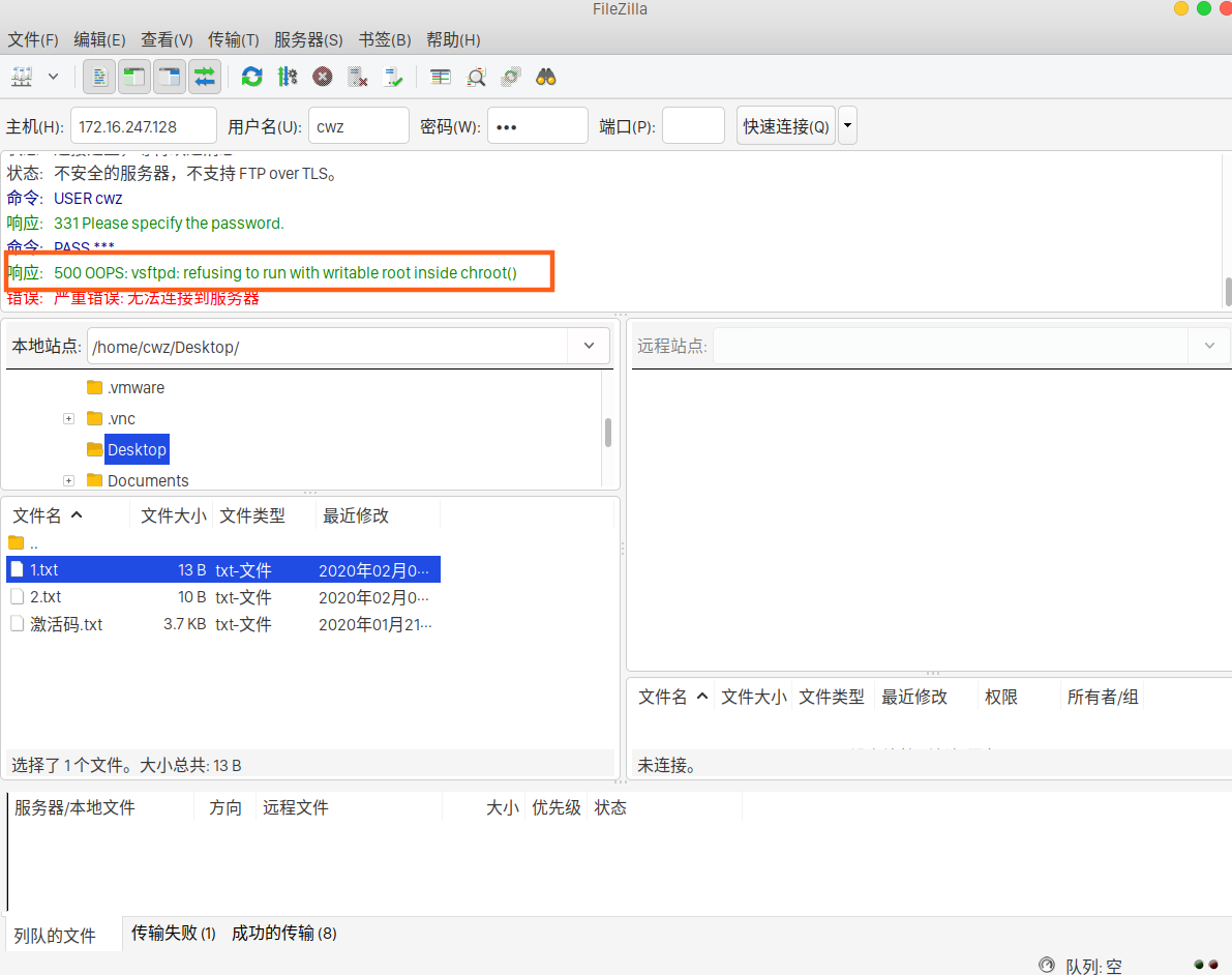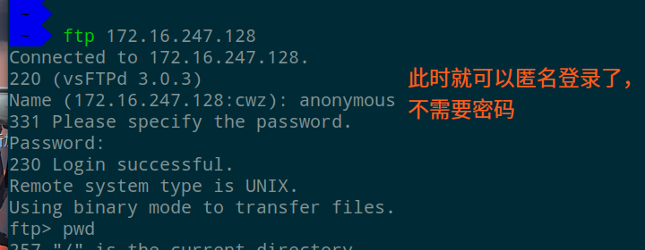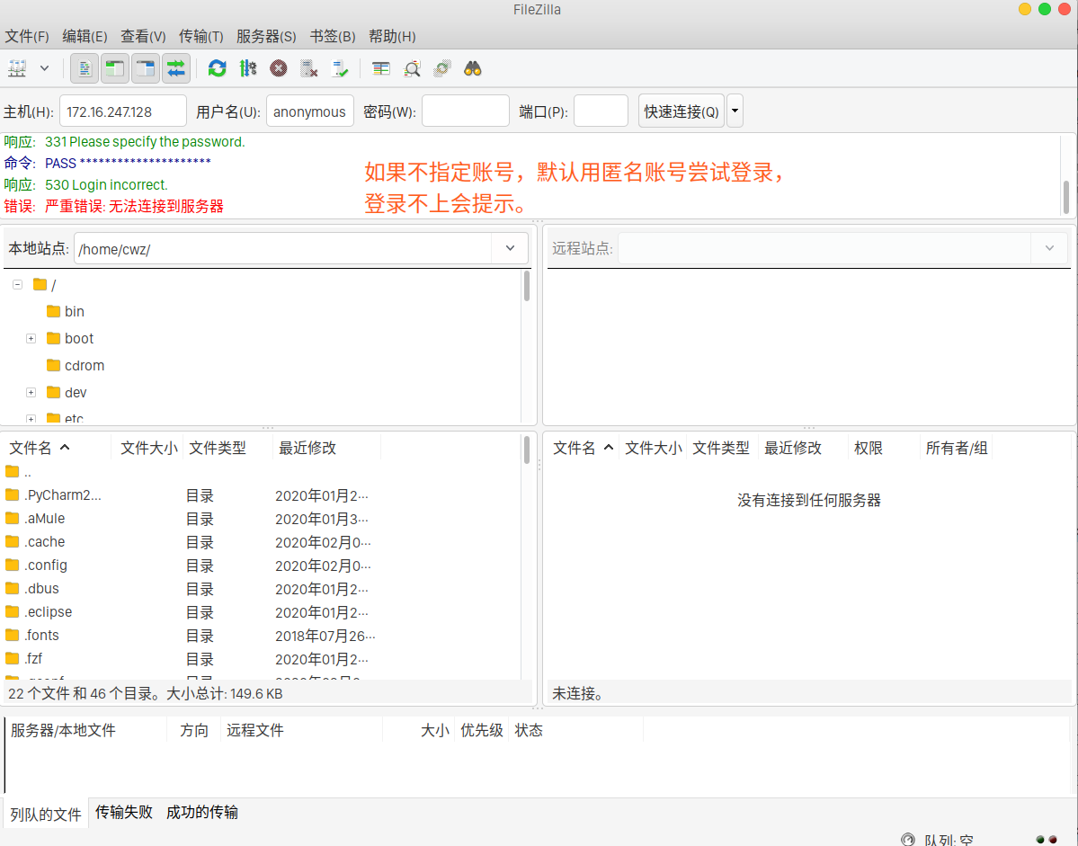 当cwz这个用户以ftp服务登录进来时,ftp获得的主目录将不再是cwz的主目录,而是另外一个目录。