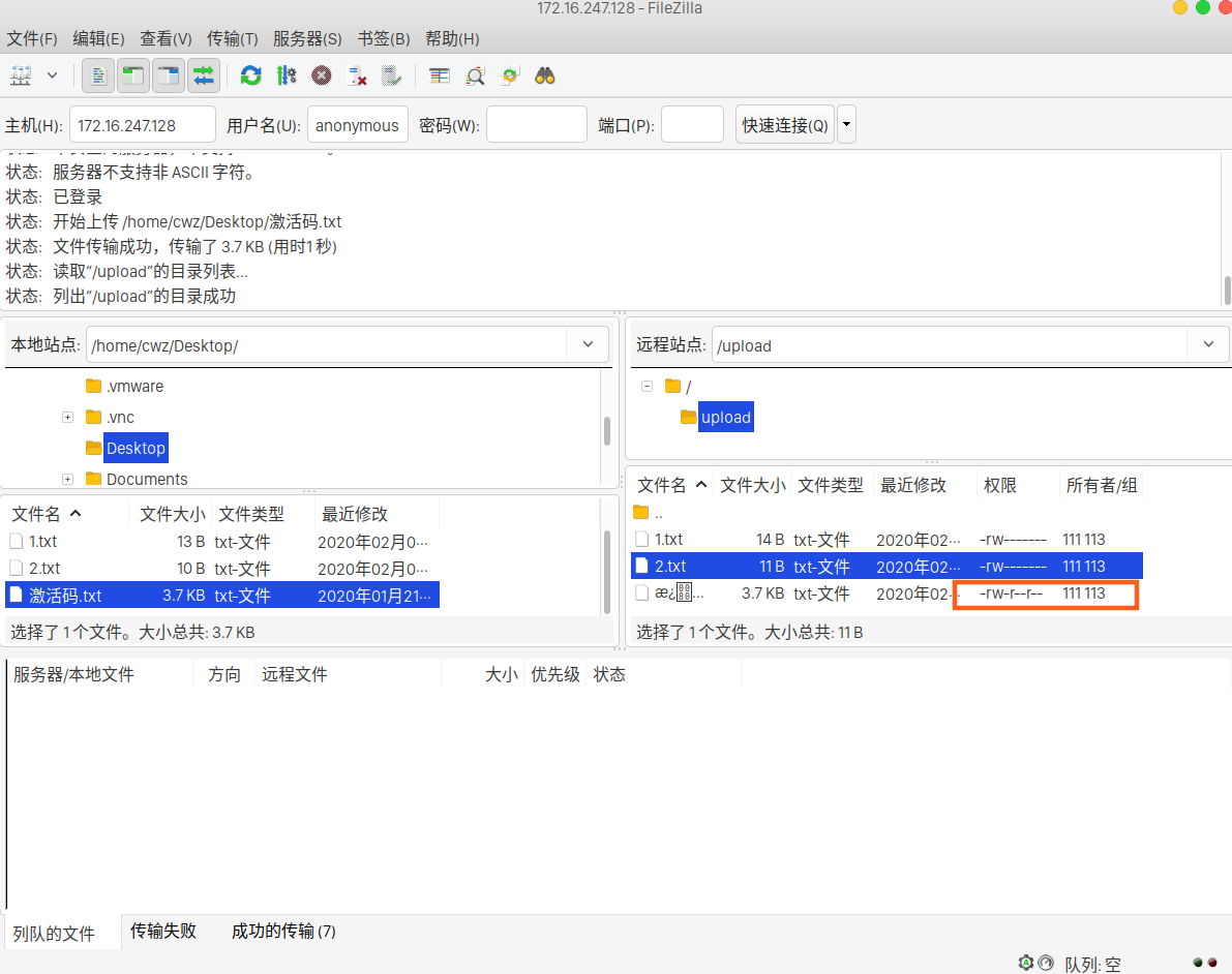 上传文件权限掩码: local_umask=022, 原来文件权限为666上传过来就会变为644